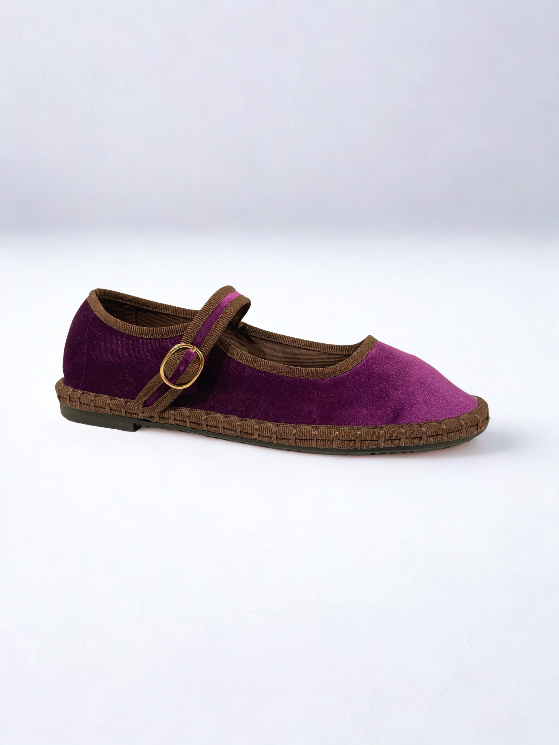 Merceditas Mary Jane en terciopelo con cinta y cierre cinturón. Suela plana y flexible. Disponible en varios colores y combinaciones!