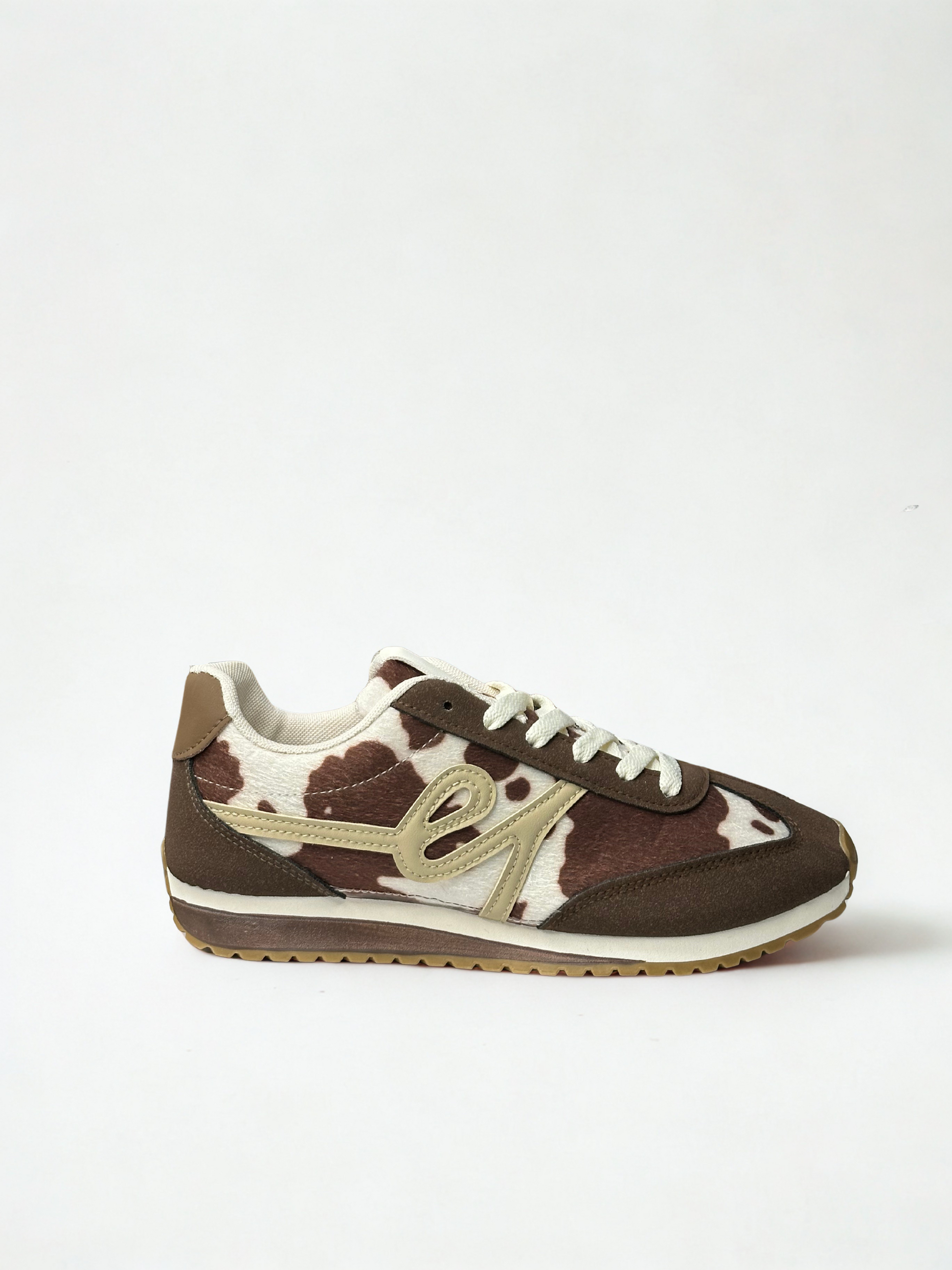 Zapatillas combinadas con detalle bordado en laterales y estampado cow. Cordones y talón en colores acordes con el diseño del calzado. Punta redonda. Suela de goma. Disponible en color cow y verde.