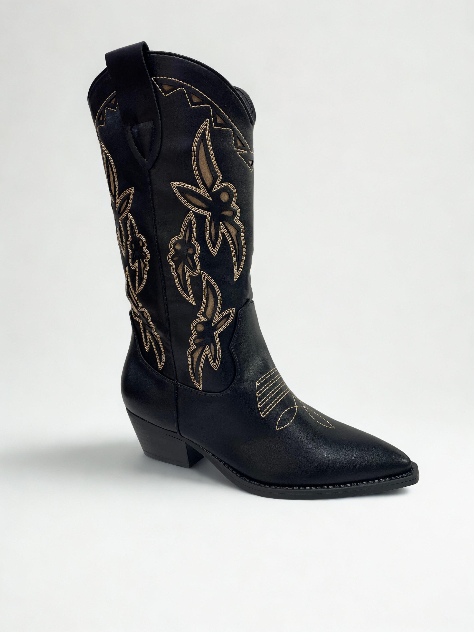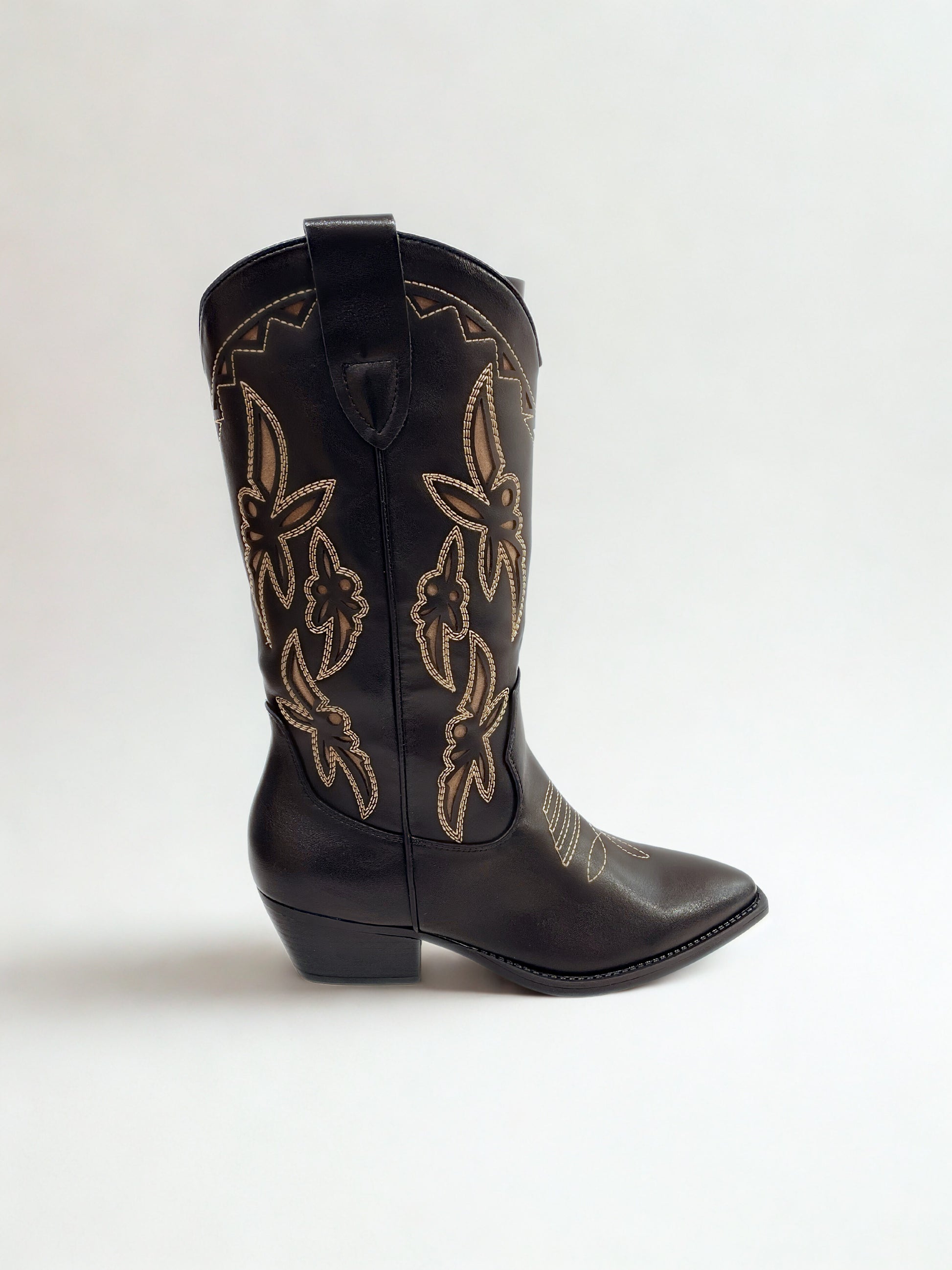BOTA COWBOY BORDADO BEIGE NEGRO
