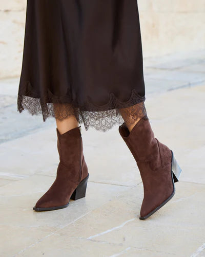 Bota con cremallera interior, exterior en antelina marron interior forro textil.