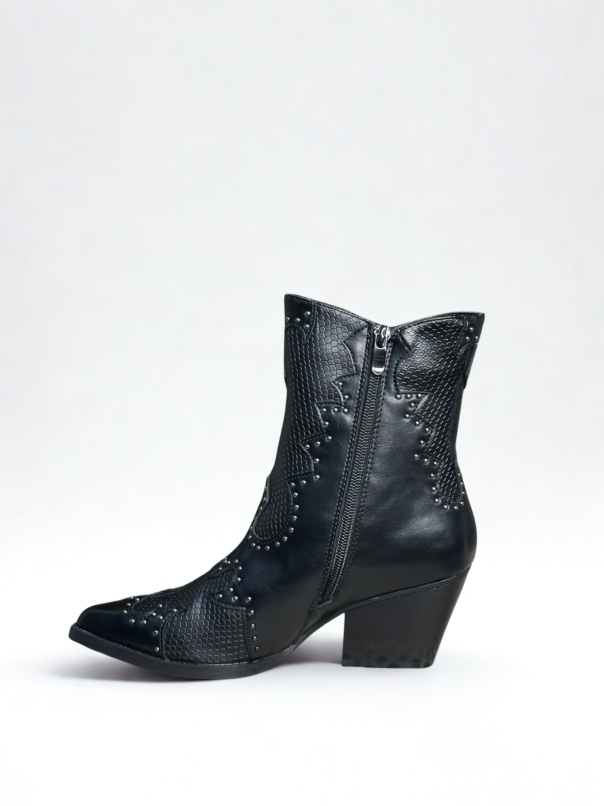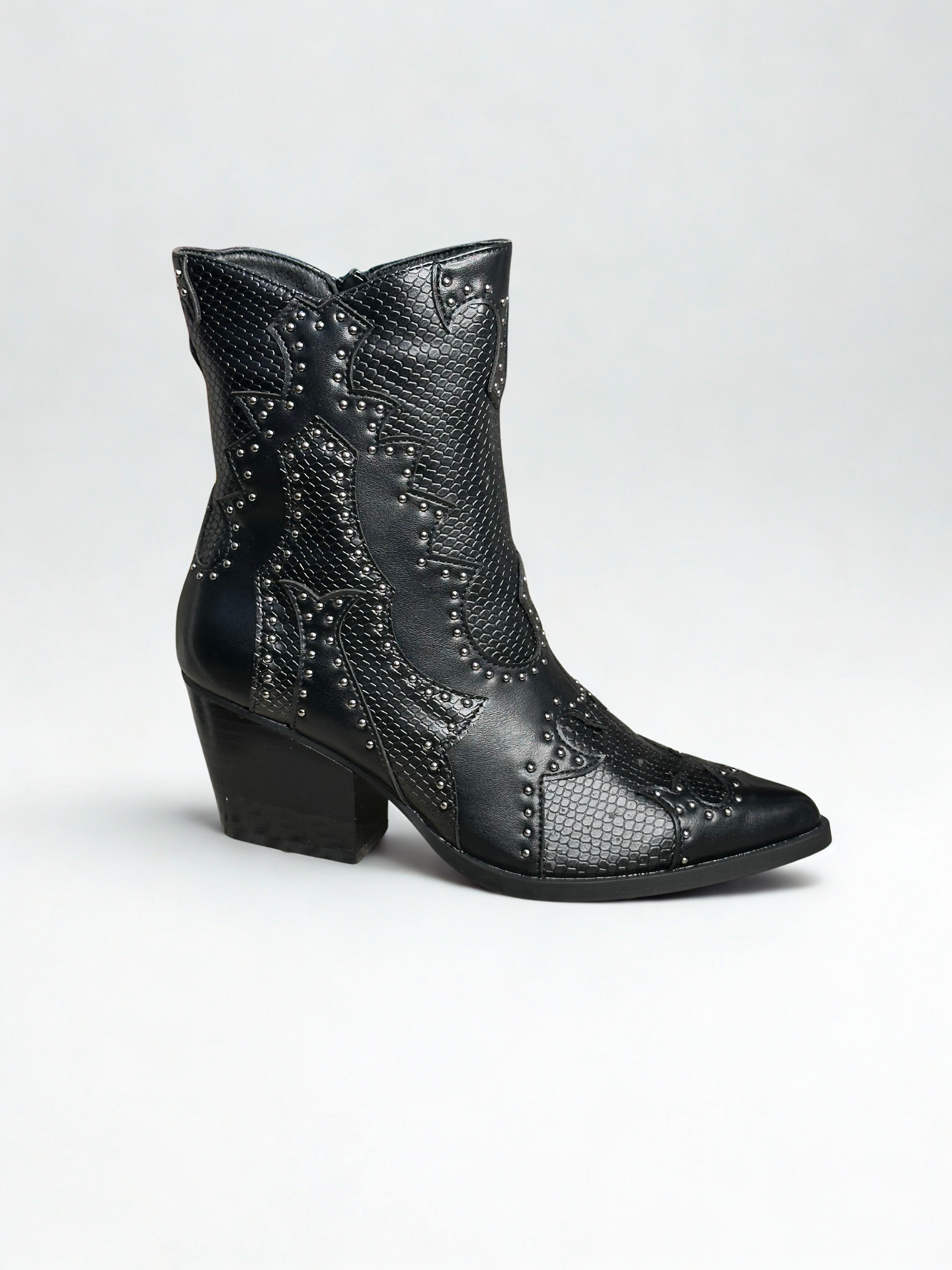 BOTÍN AURORA SERPIENTE TACHUELAS NEGRO