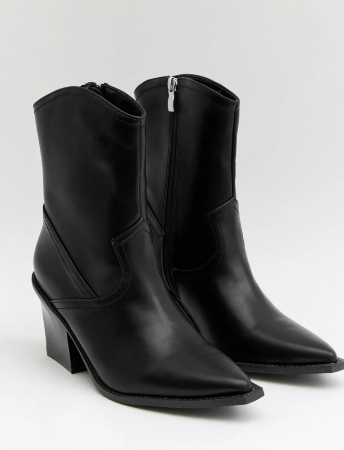 Bota con cremallera interior, exterior en polipiel negra interior forro textil.