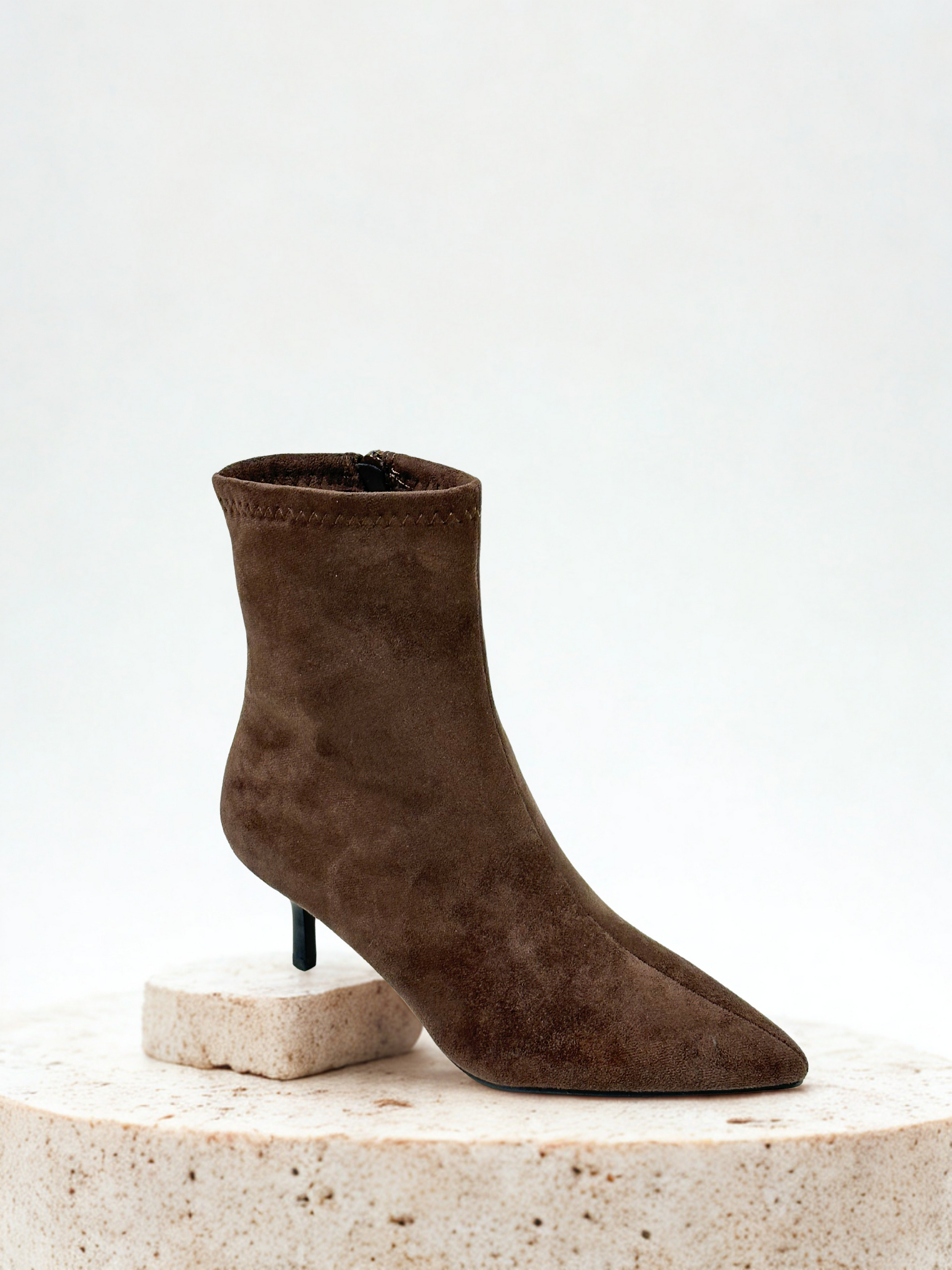 Botín de Antelina con tacón, interior textil con cremallera para mayor comodidad.