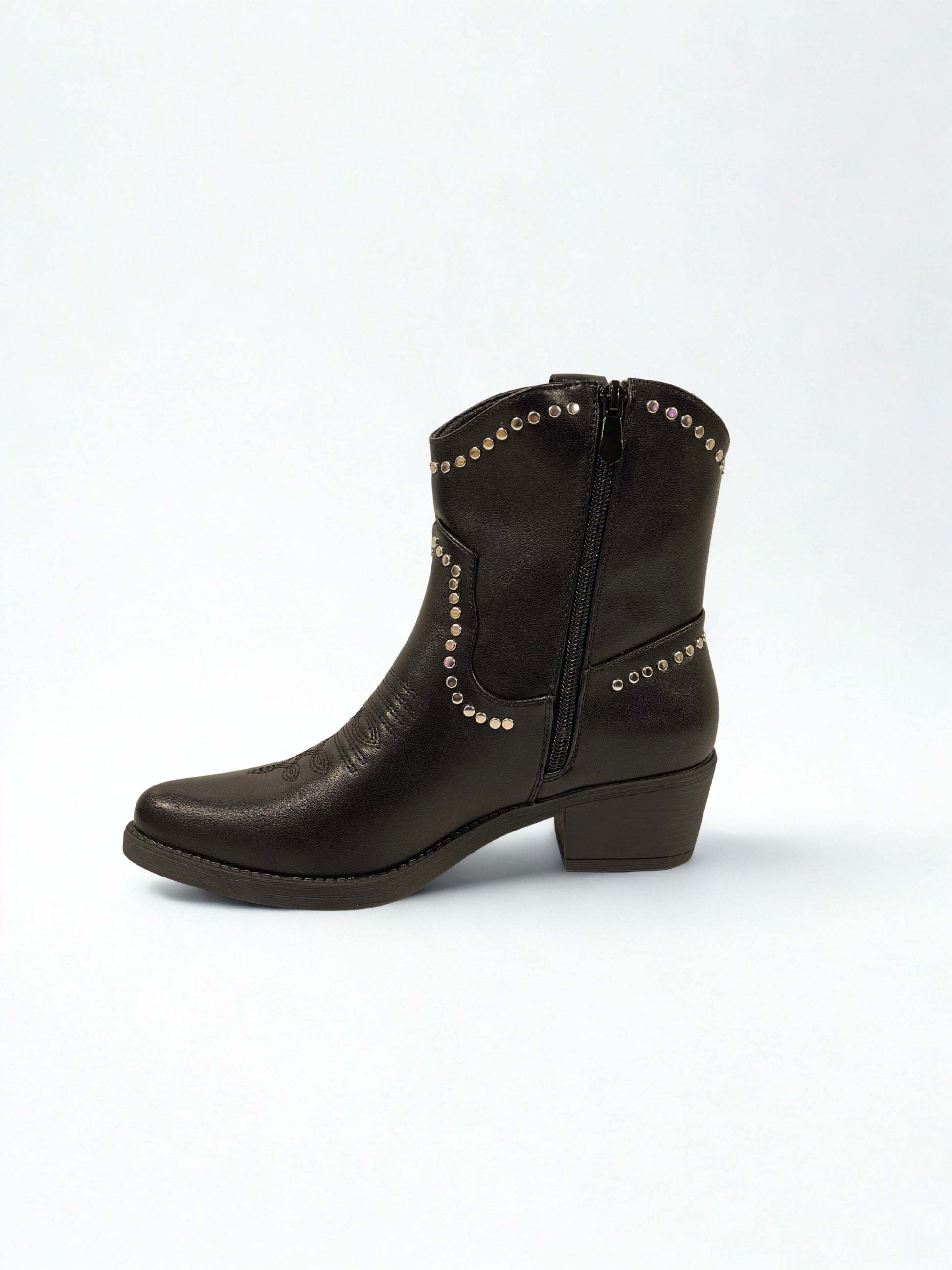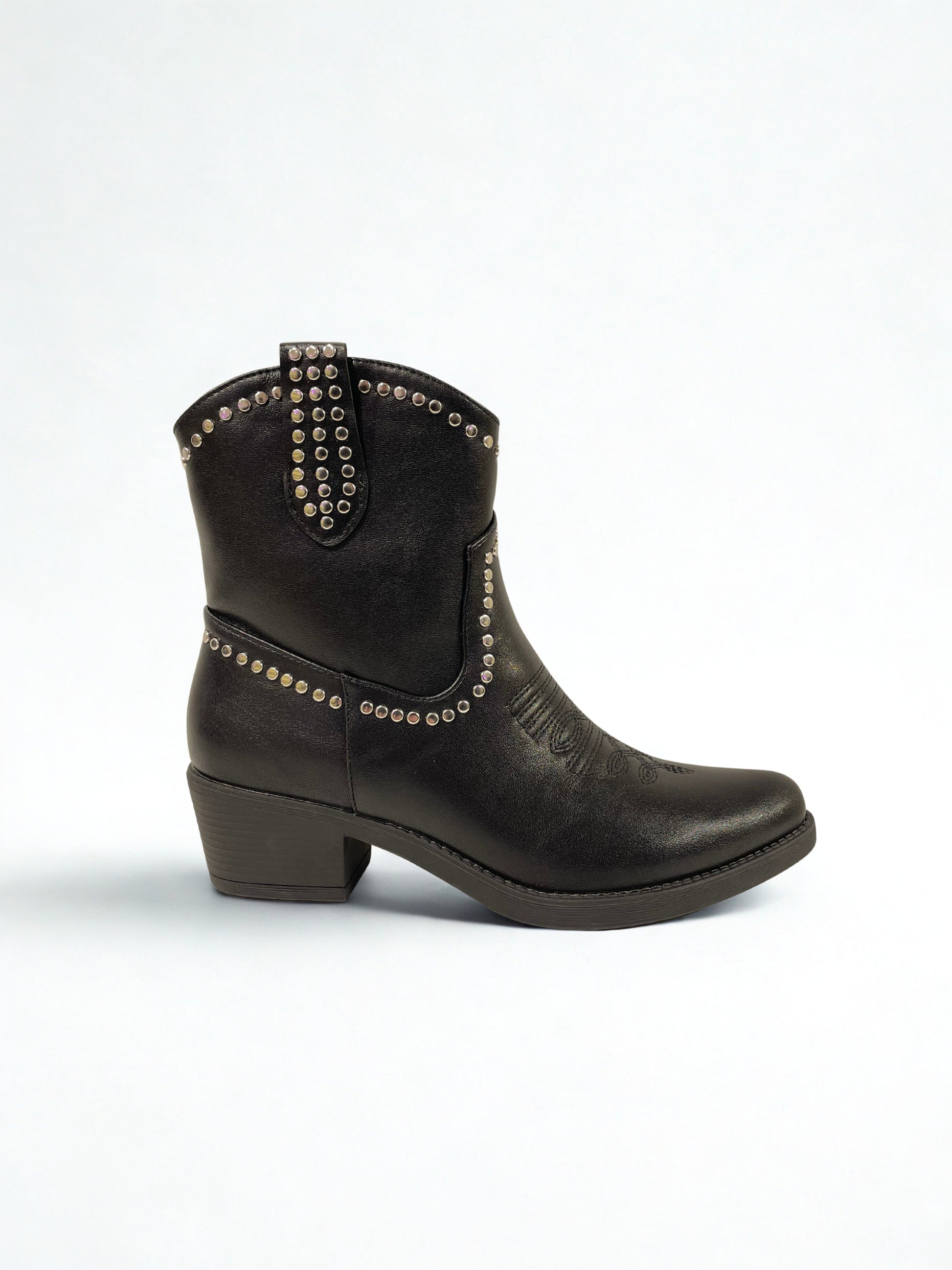 Botin bajo estilo cowboy, tachuelas plateadas.