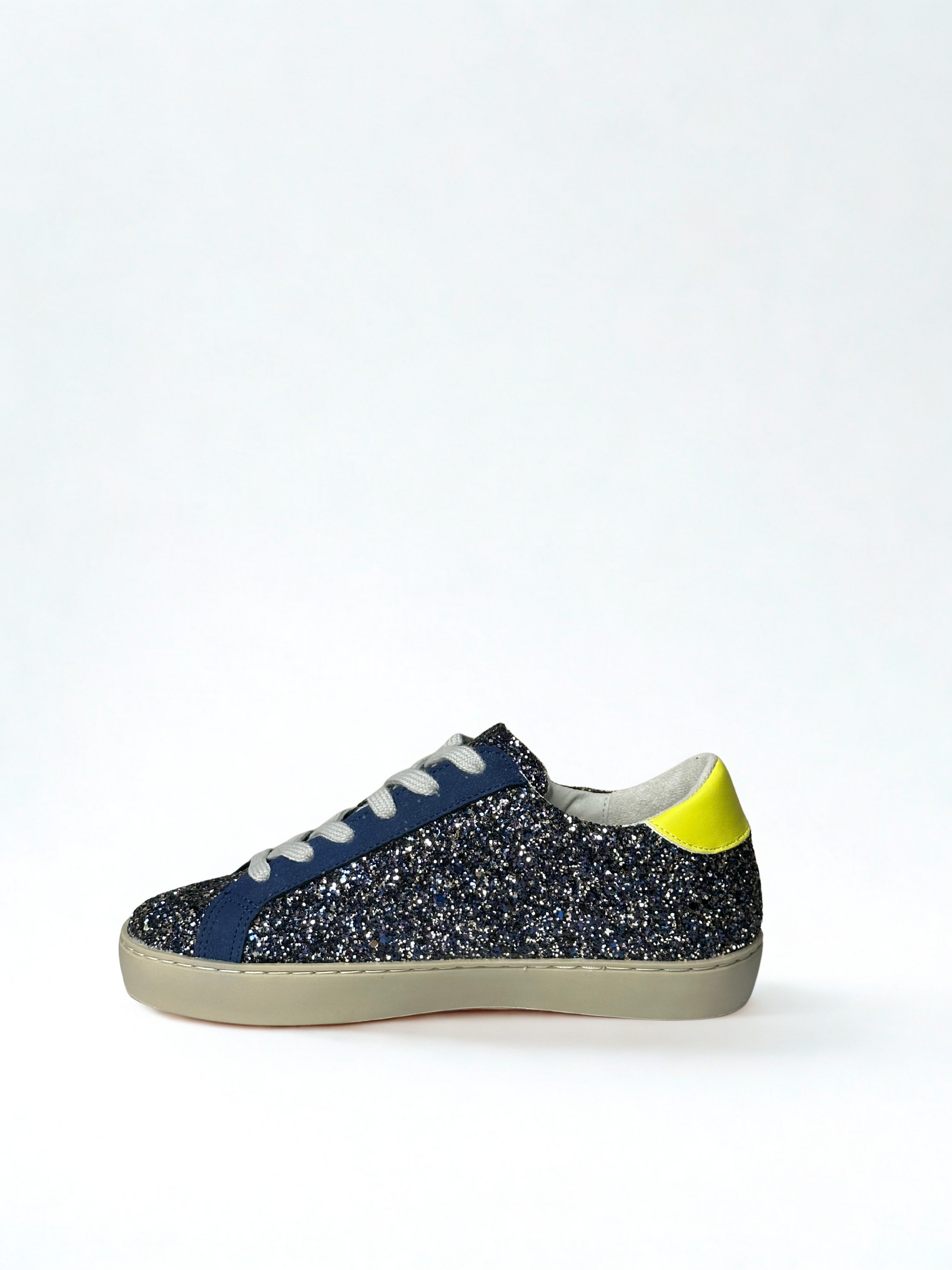 Zapatilla deportiva glitter y detalle leopardo en lateral, con suela de goma cómoda y cierre con cordones. Disponible en black/leopardo, purple/taupe y black/grey.
