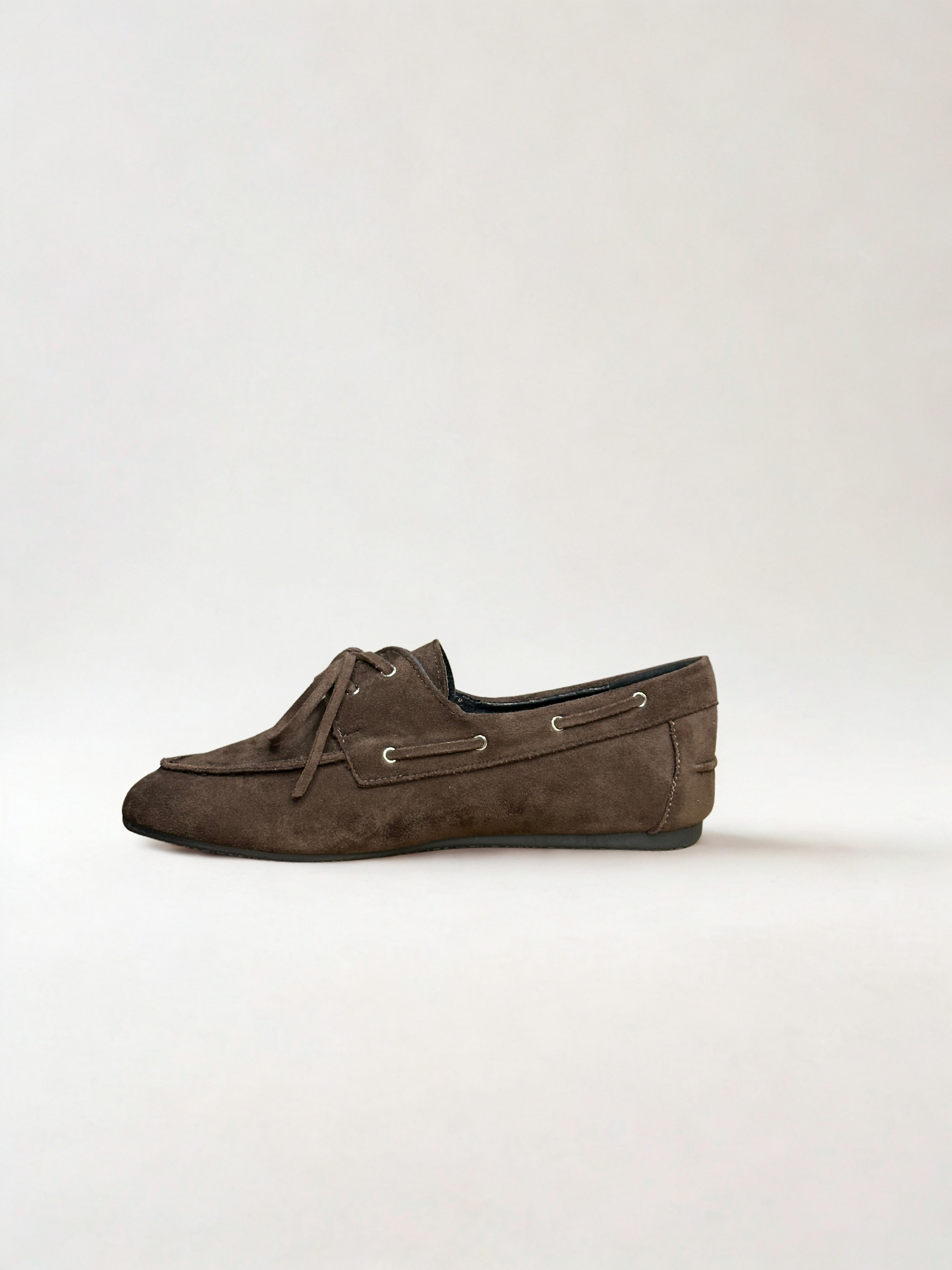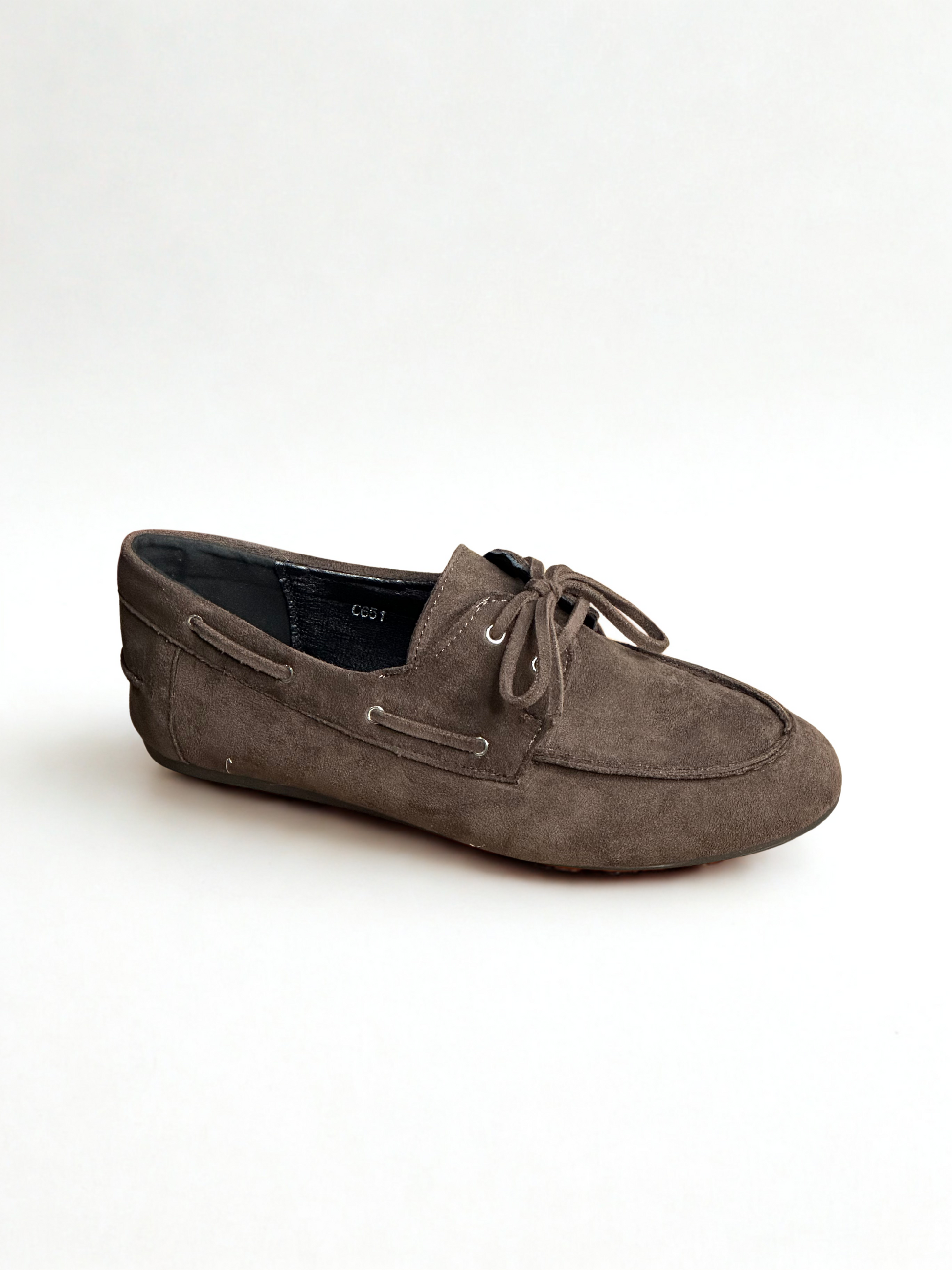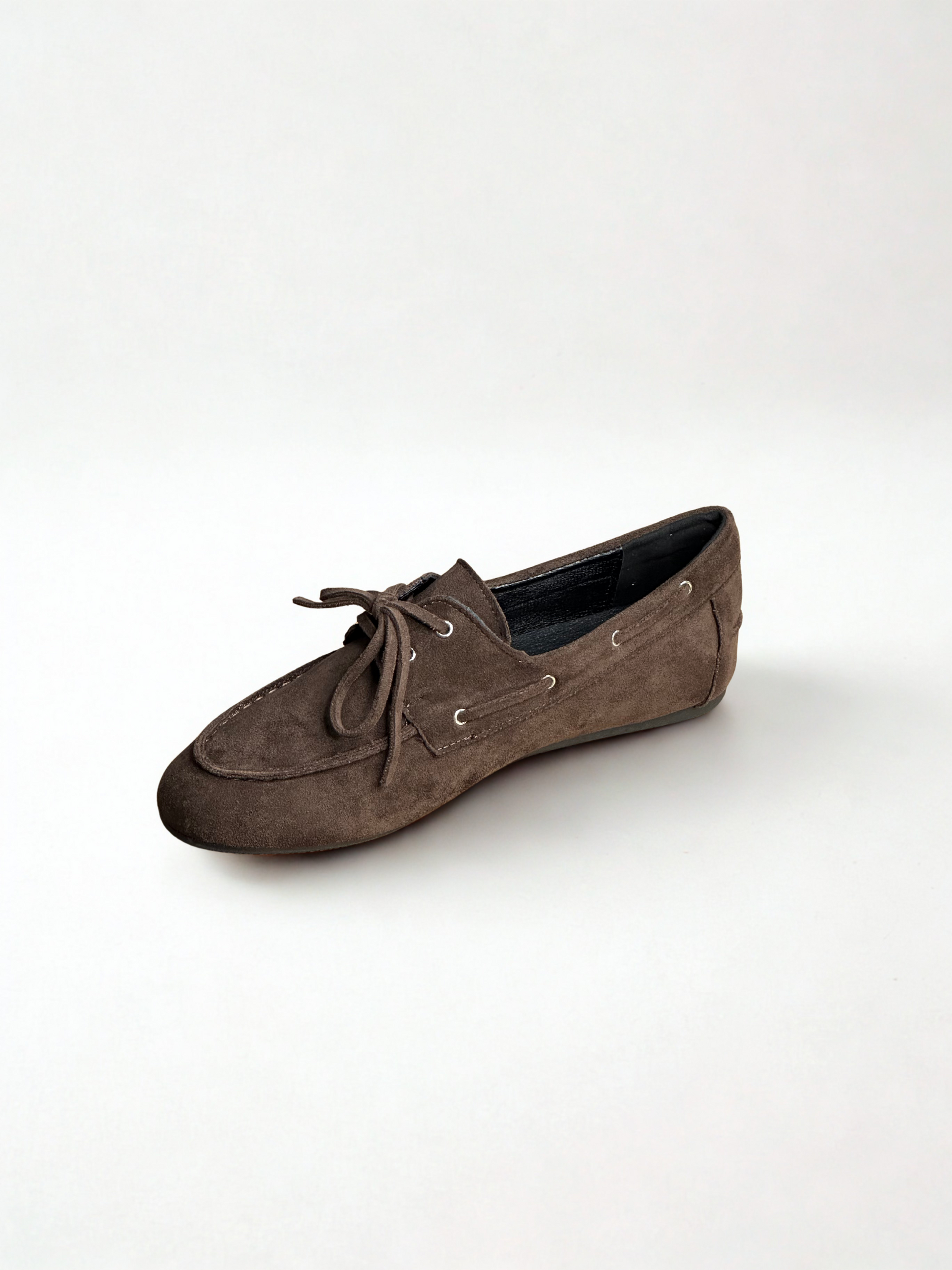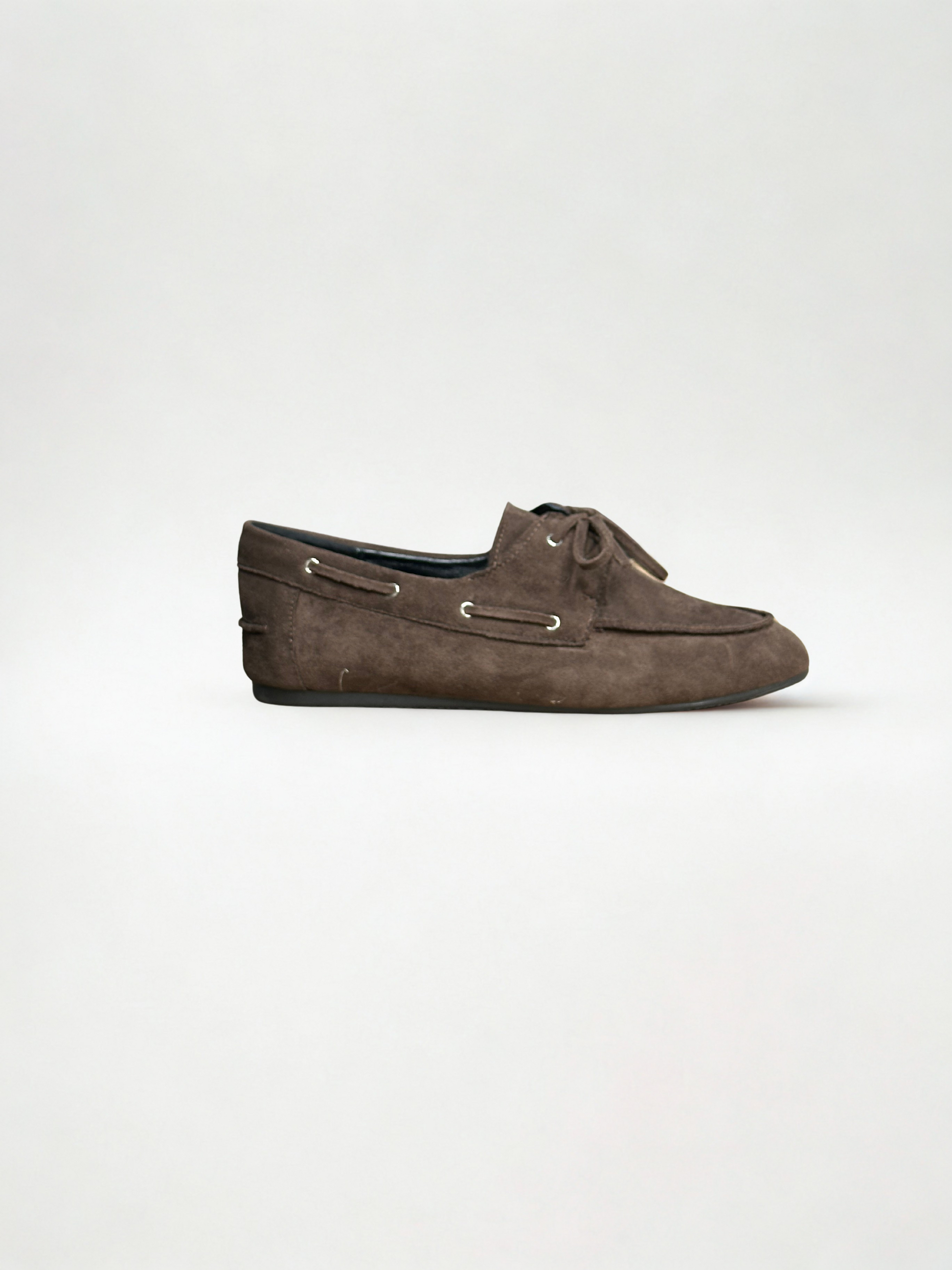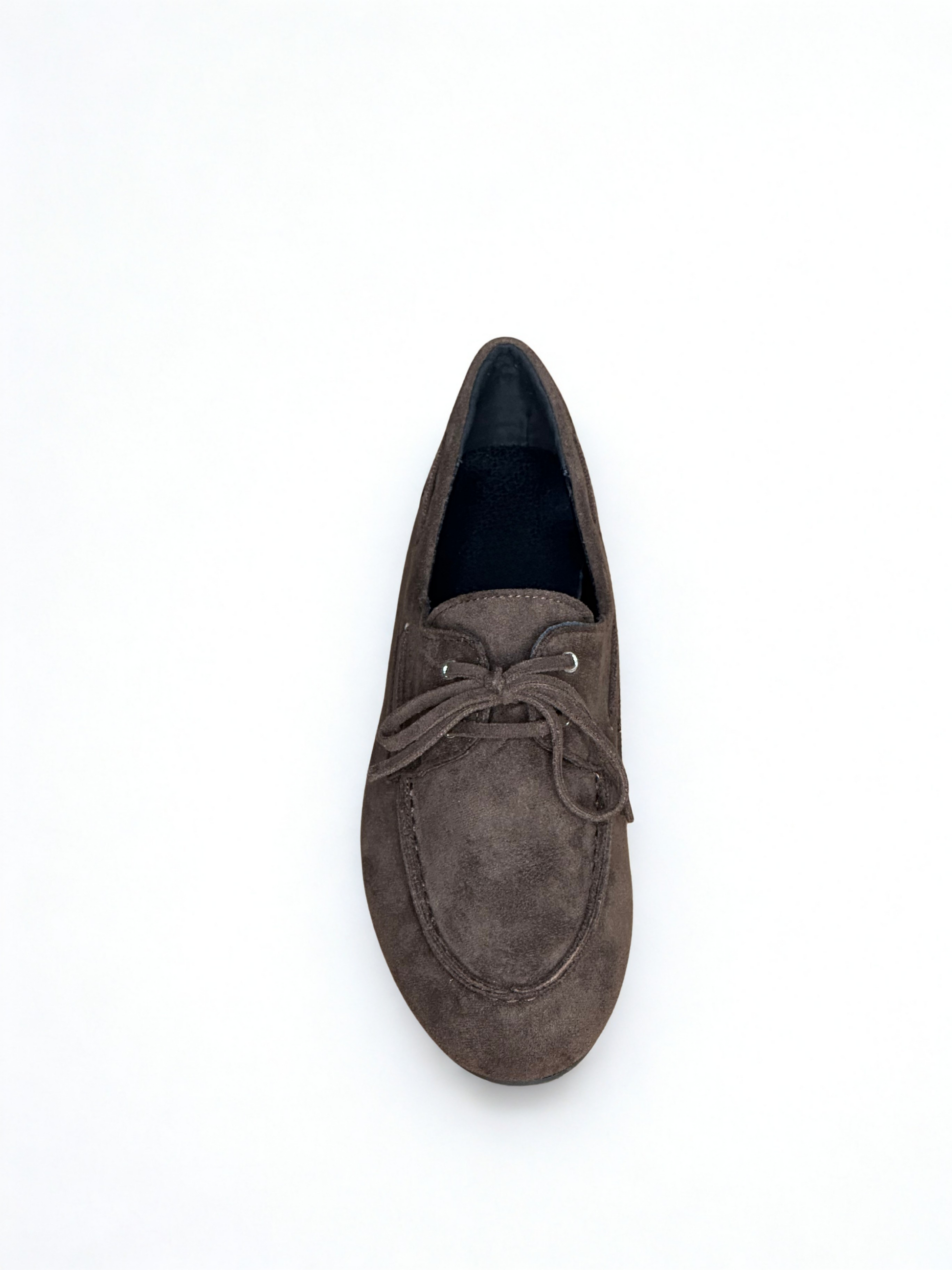 Zapato estilo náutico con costuras marcadas en parte delantera y ojales metalicos en laterales. Cierre con cordones. Punta redonda y suela flexible. Disponible en marrón, chocolate, cow y negro.